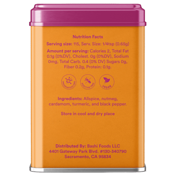 Allspice, nutmeg, cardamom, turmeric, black pepper