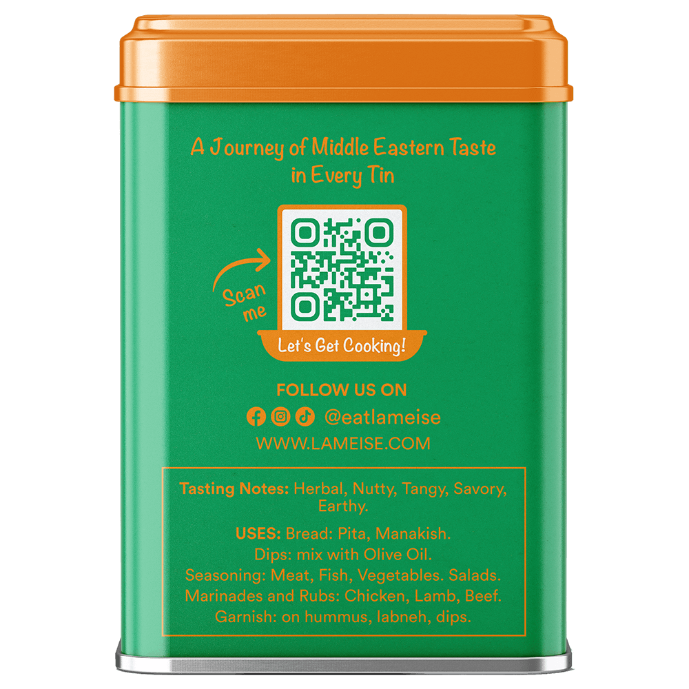 Embrace the bold flavors of the Levant with our handcrafted zaatar blend. Made with fragrant wild thyme, tart sumac, and toasted sesame seeds, it delivers the perfect mix of earthy, citrusy, and nutty notes. Sprinkle it over warm pita with olive oil, mix it into yogurt, or use it as a rub for roasted meats and vegetables. With every spoonful, this blend captures the essence of traditional Middle Eastern cuisine—simple, wholesome, and deeply flavorful.