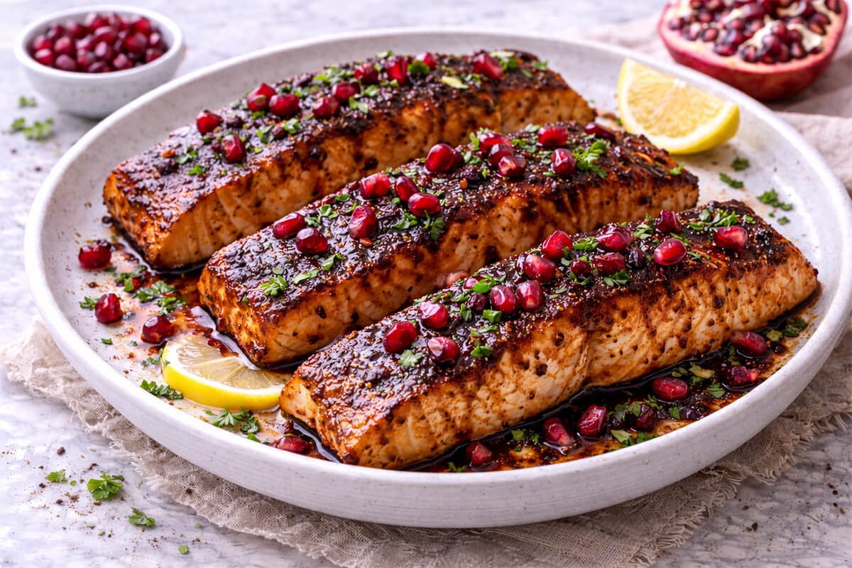 Sumac and Pomegranate Glazed Salmon