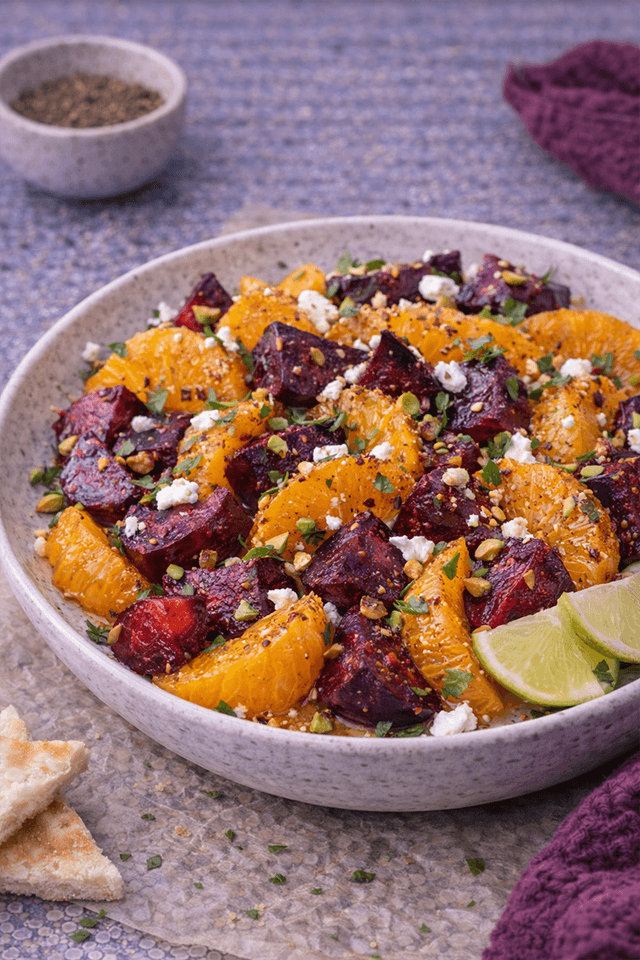 Earthy roasted beets get a fiery upgrade with harissa, balanced by juicy citrus segments and tangy goat cheese. A gorgeous feel-good side or lunch option packed with flavor and color.